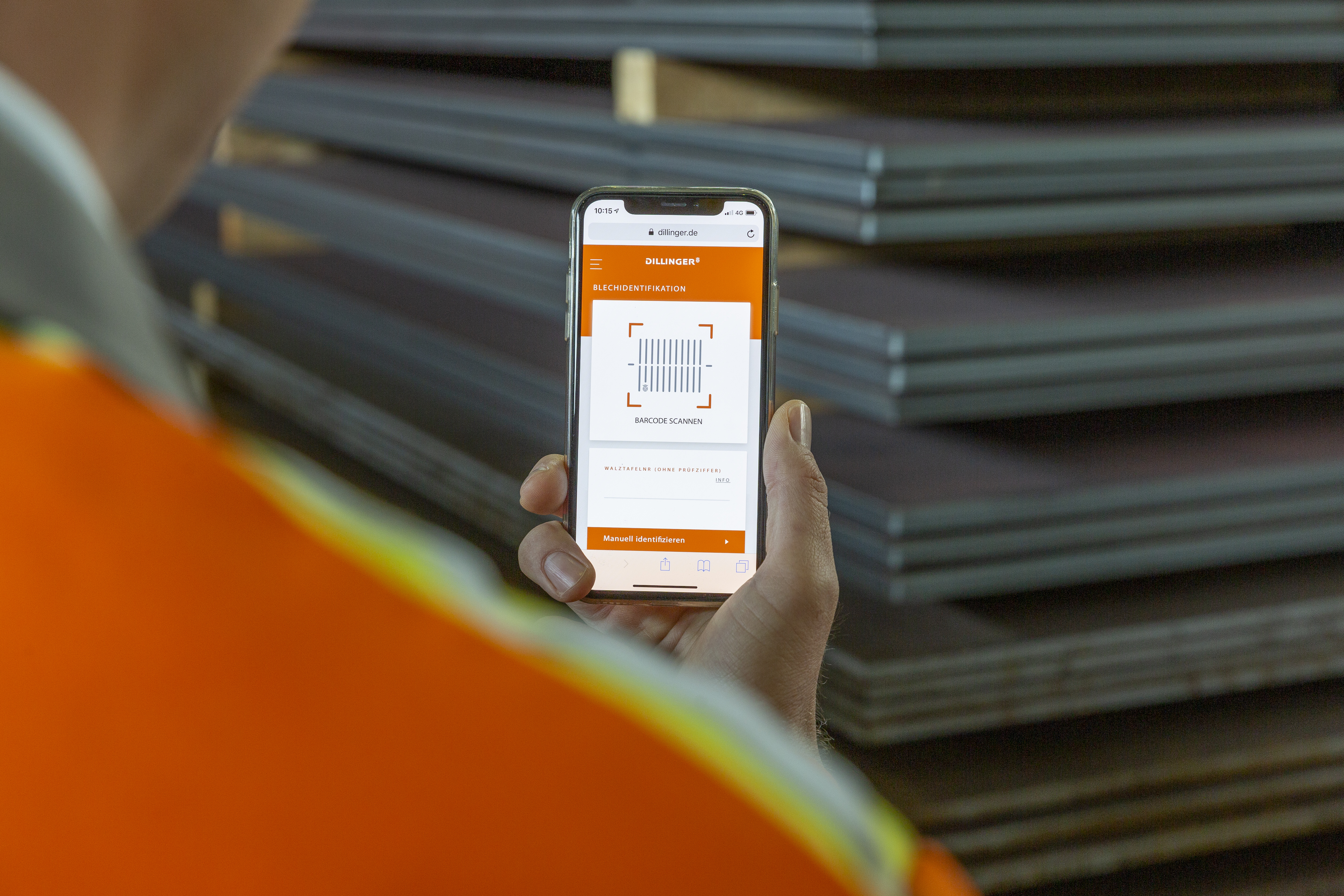 The complexity of processes and products in the steel industry has prompted us to support our customers with our E-Service platform. The E-Connect app has now been added to this service – ensuring customers can always maintain contact with Dillinger and their steel plate. While you as a customer can find and download information about your orders in Dillinger's E-Service area, including current order status, certificates, invoices, delivery history or tools for plate processing, the app now offers even more practical services: a plate can be identified quickly and reliably as Dillinger heavy plate by using a smartphone or tablet to scan its barcode or by manually entering the rolled plate number.