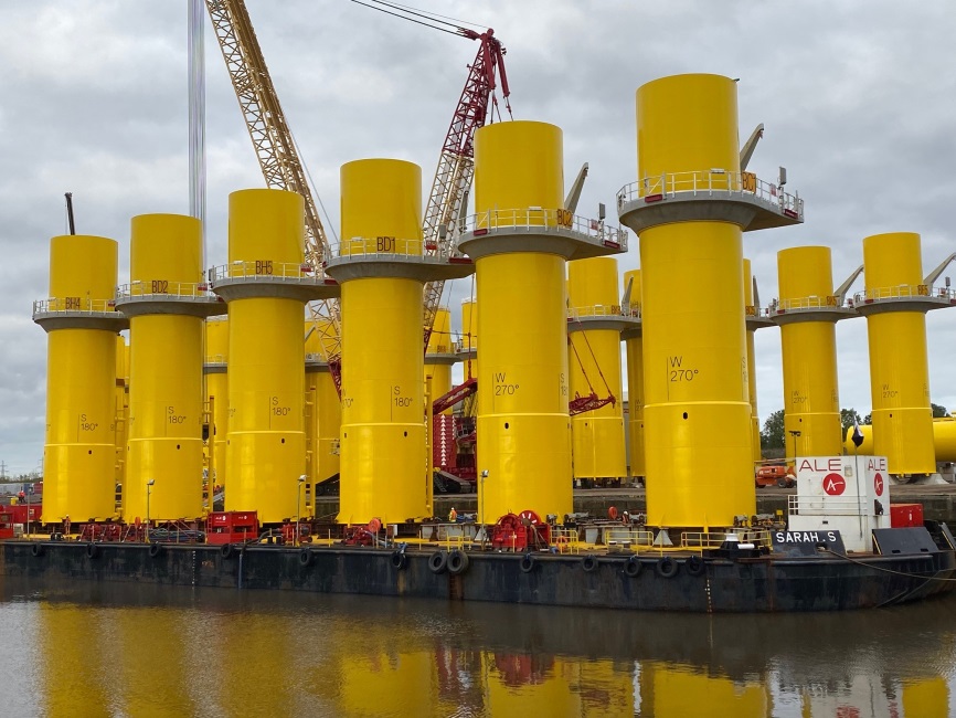 The 77 wind-energy generators with which the two lots III and IV are equipped are capable of supplying around 825,000 Dutch households annually with environmentally safe electricity, saving more than one million tonnes CO2. The 77 MHI Vestas V164 9.5 MW machines are also carried on monopiles. A large number of thermomechanically rolled plates with item weights of a potentially record-breaking > 40 t were used for the monopile foundations, permitting optimised welding and handling. Each monopile is 85 m long and weighs 1,280 t. Dillinger supplied around 70,000 t of heavy plate for these monopile structures.