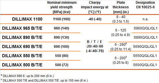 DILLIMAX steels are thus coming ever more into use in ever larger machines, conveying systems and lifting equipment, including giant cranes.
